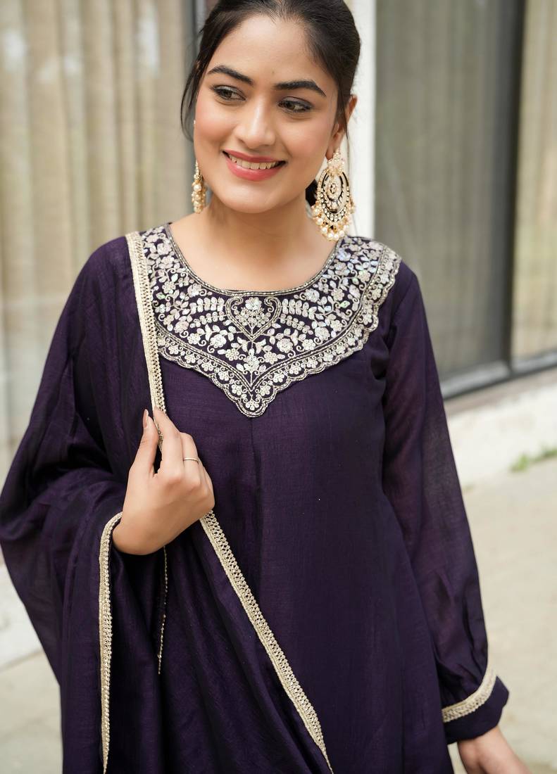 | • | Dupatta | : | Color- Dark Purple / Fabric- Silk Blend |