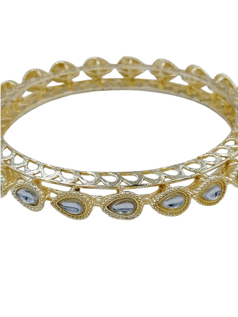 | Product Description | Enhance Your Ethnic Ensemble With These Exquisite Gold Plated Bangles, Featuring A Unique Scalloped Silhouette. Adorned With Precision Cut Kundan Stones And Delicate Beadwork, These Handcrafted Pieces Blend Traditional Artistry With Modern Flair. Perfect For Weddings Or Festive Celebrations, They Offer A Regal Touch To Any Sophisticated Jewelry Collection. |
