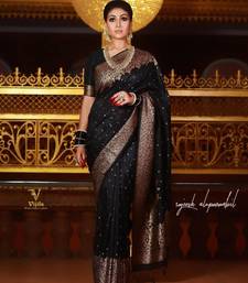 Elegant black silk blend saree with copper brocade work