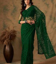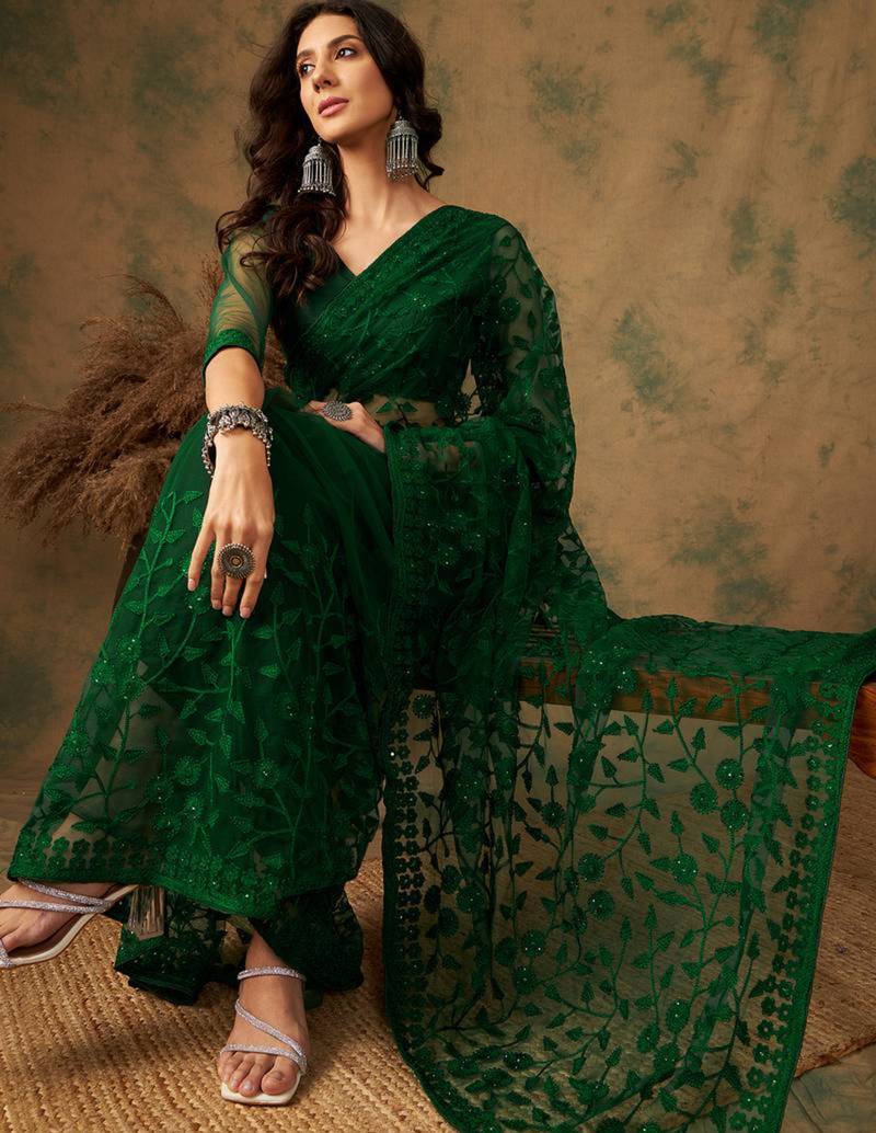 Emerald green net embroidered saree