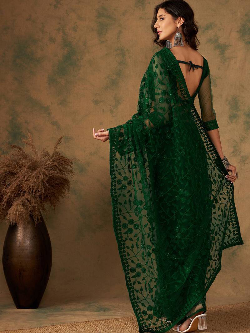 | Product Name | Emerald Green Net Embroidered Saree | |