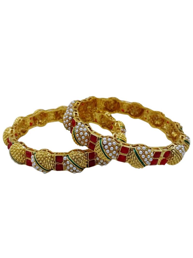Product Name Festive Red & Pearl Beaded Bangles