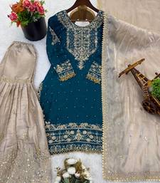 | Product Name | Teal And Beige Silk Blend Embroidered Sharara Suit | |