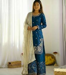 | Product Name | Gmy Silk Teal Blue Embroidered Palazzo Suit | |