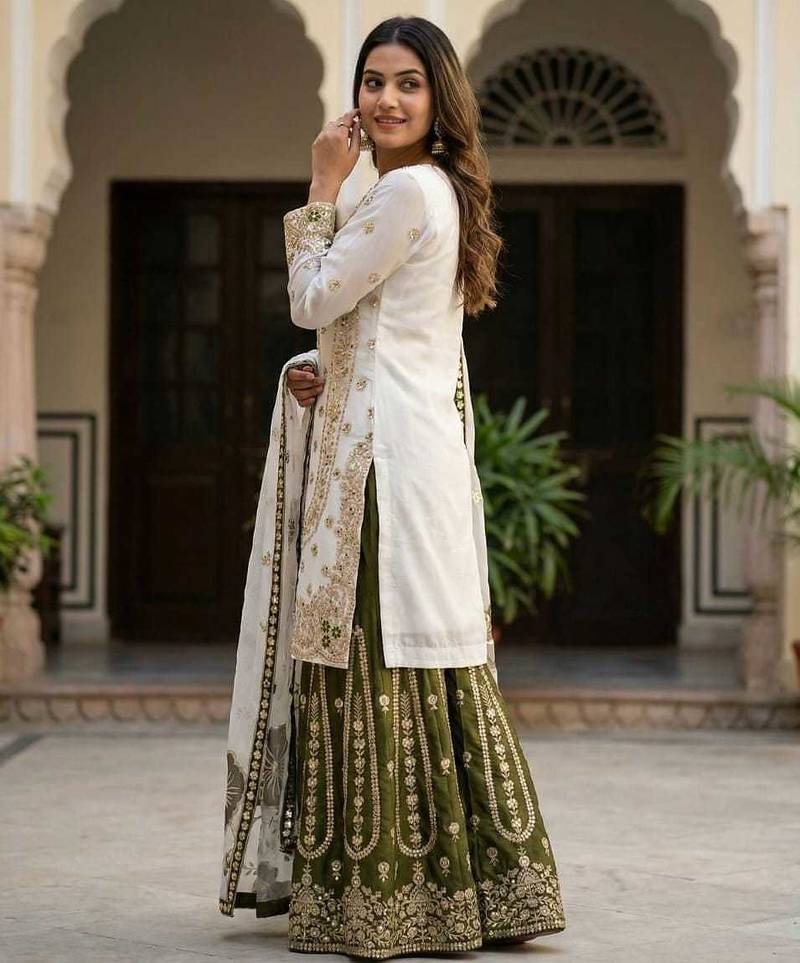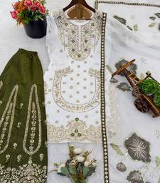 | Product Name | Gmy Silk White And Olive Green Palazzo Ensemble | |