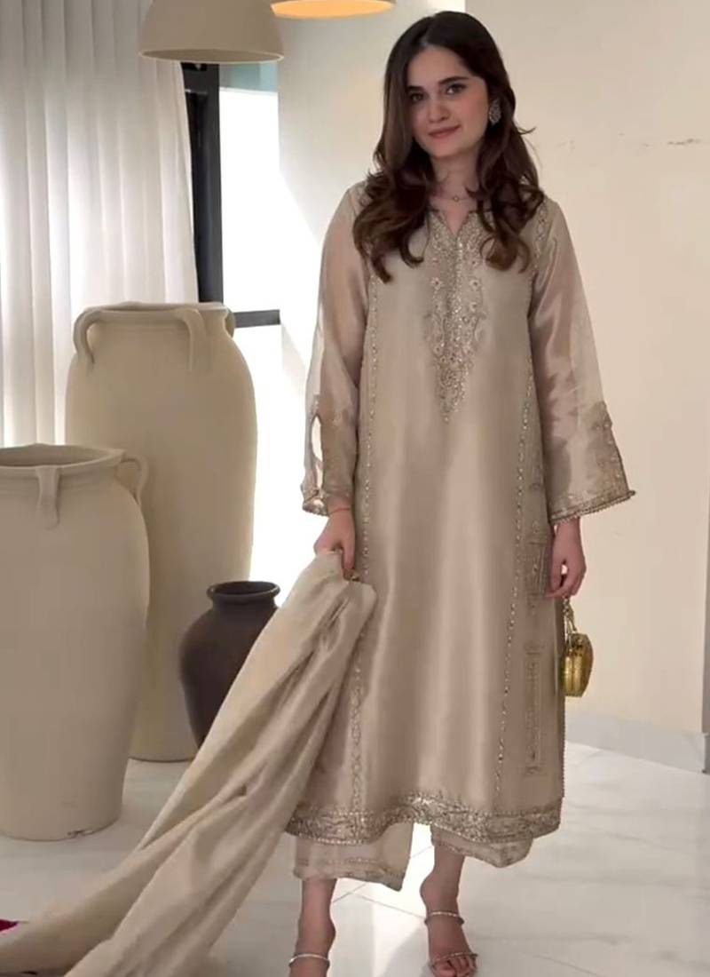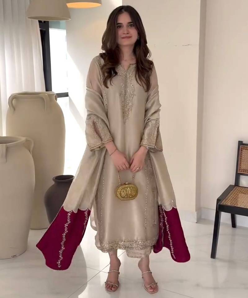 | • | Dupatta | : | Color- Beige / Fabric- Silk Blend |