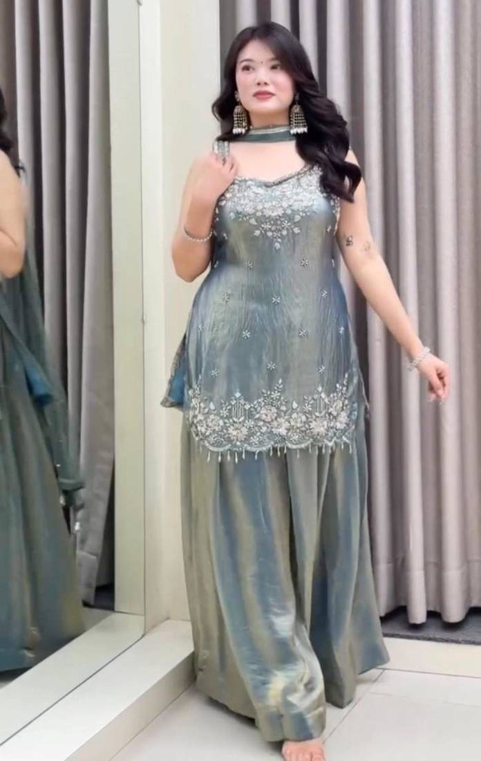 | Product Description | Add A Modern Touch To Your Wardrobe With This Grey Sharara Set Featuring Delicate Embroidery And A Stylish Sleeveless Kurta. Paired With Flared Sharara Pants And A Matching Dupatta, This Outfit Offers Comfort And Elegance. Perfect For Parties, Festive Gatherings, And Evening Celebrations. |