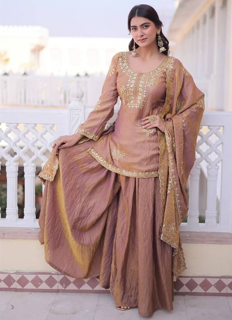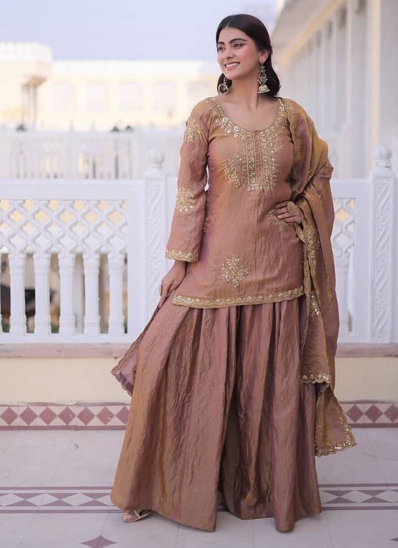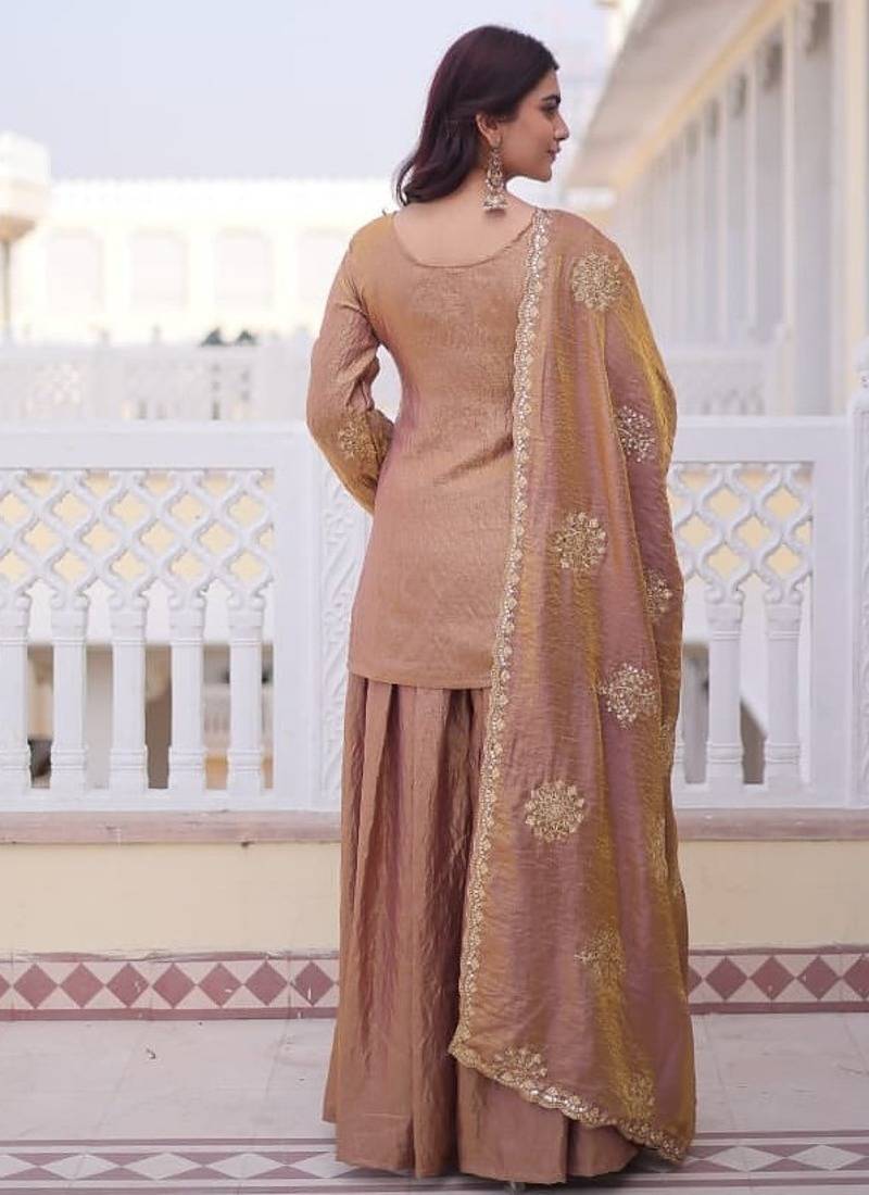 | Product Description | Add Warmth To Your Wardrobe With This Light Brown Ethnic Suit Featuring Intricate Gold Embroidery. Designed With A Classic Kurta, Matching Bottoms, And A Coordinated Dupatta, It Offers A Rich Traditional Look. Ideal For Festive Occasions, Cultural Events, And Celebrations With A Timeless, Elegant Appeal. |