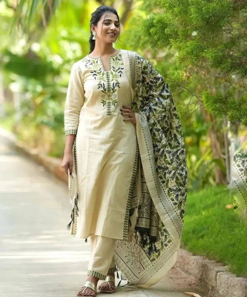 | Product Description | This Light Olive Kurta Set Offers A Calm And Graceful Look With Its Subtle Embroidery And Soft Fabric. Designed For Comfort, It Is Ideal For Everyday Wear. The Coordinated Dupatta Enhances Its Elegance, Making It A Perfect Choice For Casual Outings Or Relaxed Occasions. |