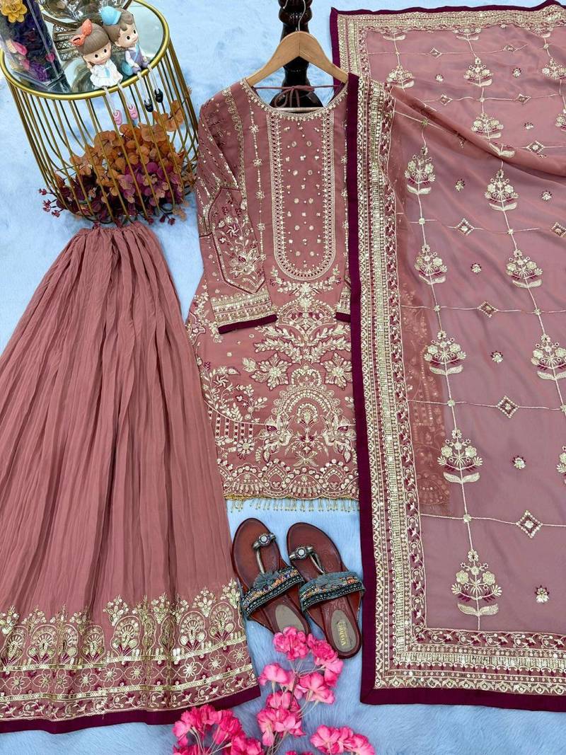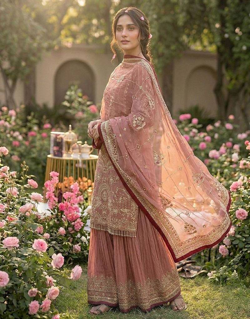 | Product Description | Soft Light Pink Sharara Set With Intricate Golden Embroidery And A Flowing Dupatta. Ideal For Wedding Functions, Mehendi Ceremonies, And Festive Celebrations. The Elegant Detailing Creates A Luxurious And Graceful Ethnic Look. |