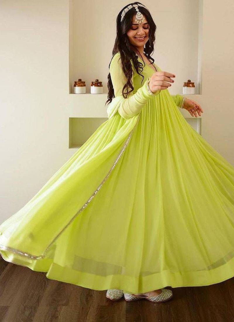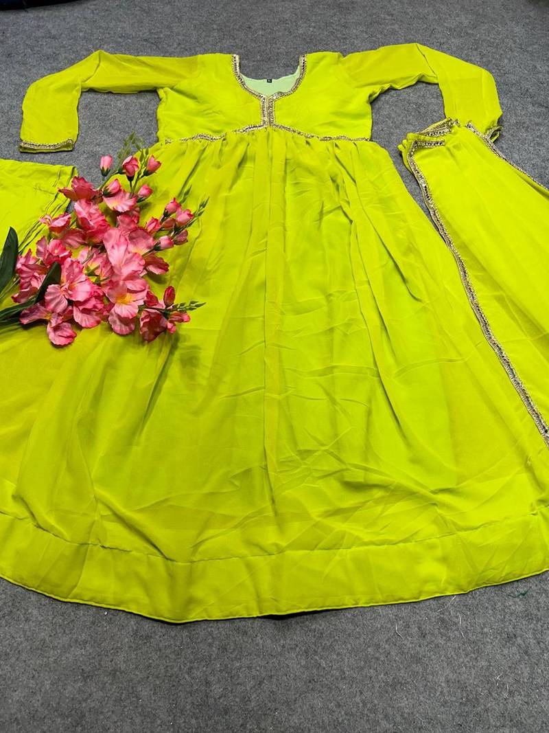 | Product Description | Make A Vibrant Statement With This Lime Green Anarkali Suit Featuring A Flowing Silhouette And Subtle Neckline Detailing. Designed With Lightweight Fabric For Comfort And Movement, It Is Perfect For Festive Occasions And Celebrations. This Outfit Combines Bold Color With Simple, Elegant Ethnic Styling. |