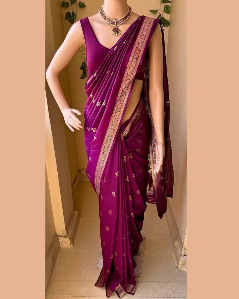 | Product Name | Magenta Silk Blend Saree With Classic Gold Zari Border | |