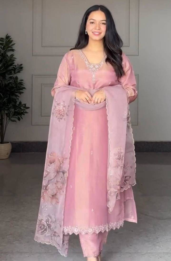 | Product Description | This Ethereal Mauve Ensemble Is Crafted From Premium Organza Silk, Offering A Subtle Iridescent Sheen. The Neckline Is Highlighted With Delicate Crystalline Hand Embroidery, While The Matching Dupatta Showcases Oversized, Hand Painted Floral Motifs And Scalloped Edges. It Is A Masterpiece Of Minimalist Luxury, Designed For The Discerning Woman Who Appreciates Artisanal Detail. |