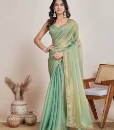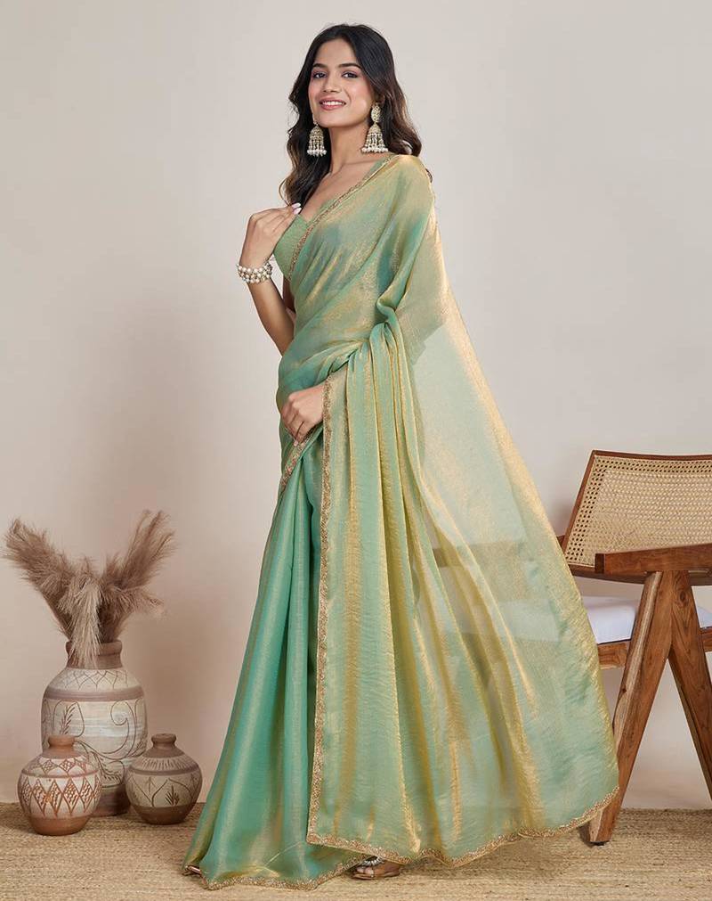 Mint green shimmer chiffon saree