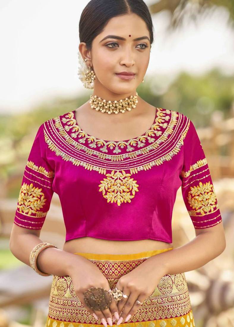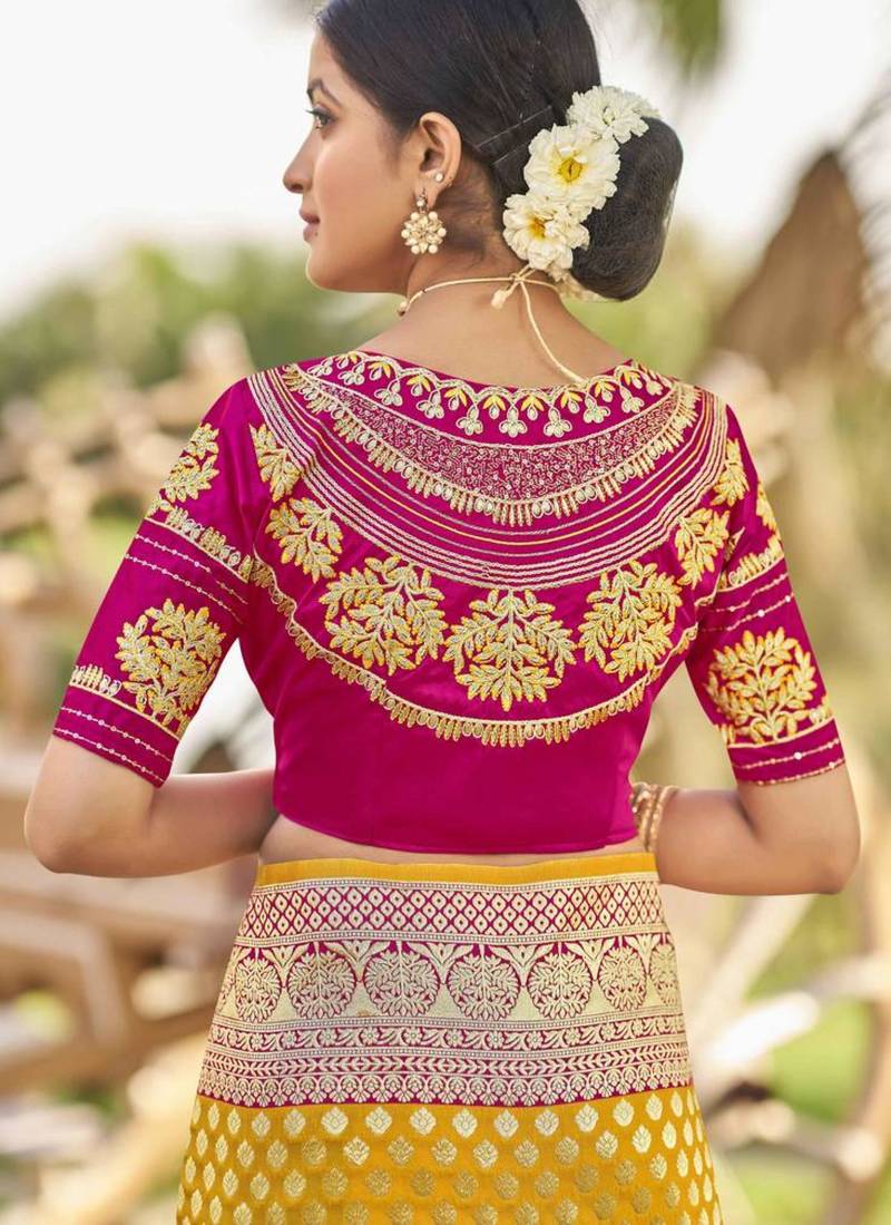 | Product Description | Celebrate In Style With This Opulent Mustard Yellow Banarasi Silk Saree. Woven With Rich Gold Zari Butis And A Magnificent Pink Toned Pallu, This Saree Represents The Pinnacle Of Indian Bridal Craftsmanship. Its Heavy Texture And Lustrous Finish Provide A Royal Drape Suitable For Weddings And Significant Milestone Celebrations. |