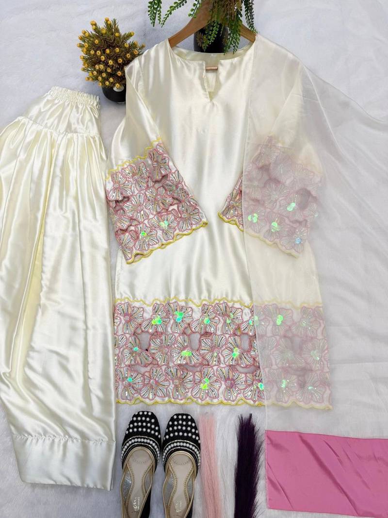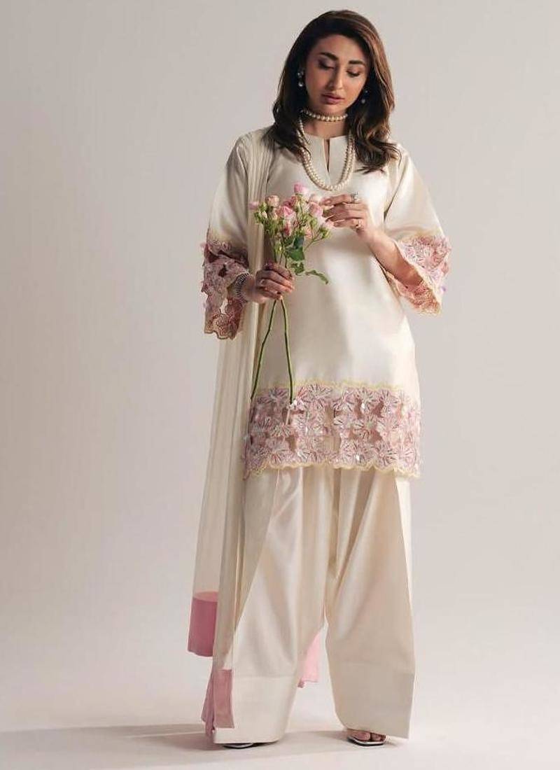 | Product Description | Experience Subtle Elegance With This Off White Suit Adorned With Delicate Pastel Floral Embroidery. The Kurta Pairs With Wide Palazzo Pants And A Sheer Dupatta For A Soft, Graceful Look. Perfect For Daytime Events, Festive Occasions, And Celebrations, This Outfit Blends Minimal Style With Refined Sophistication Beautifully. |