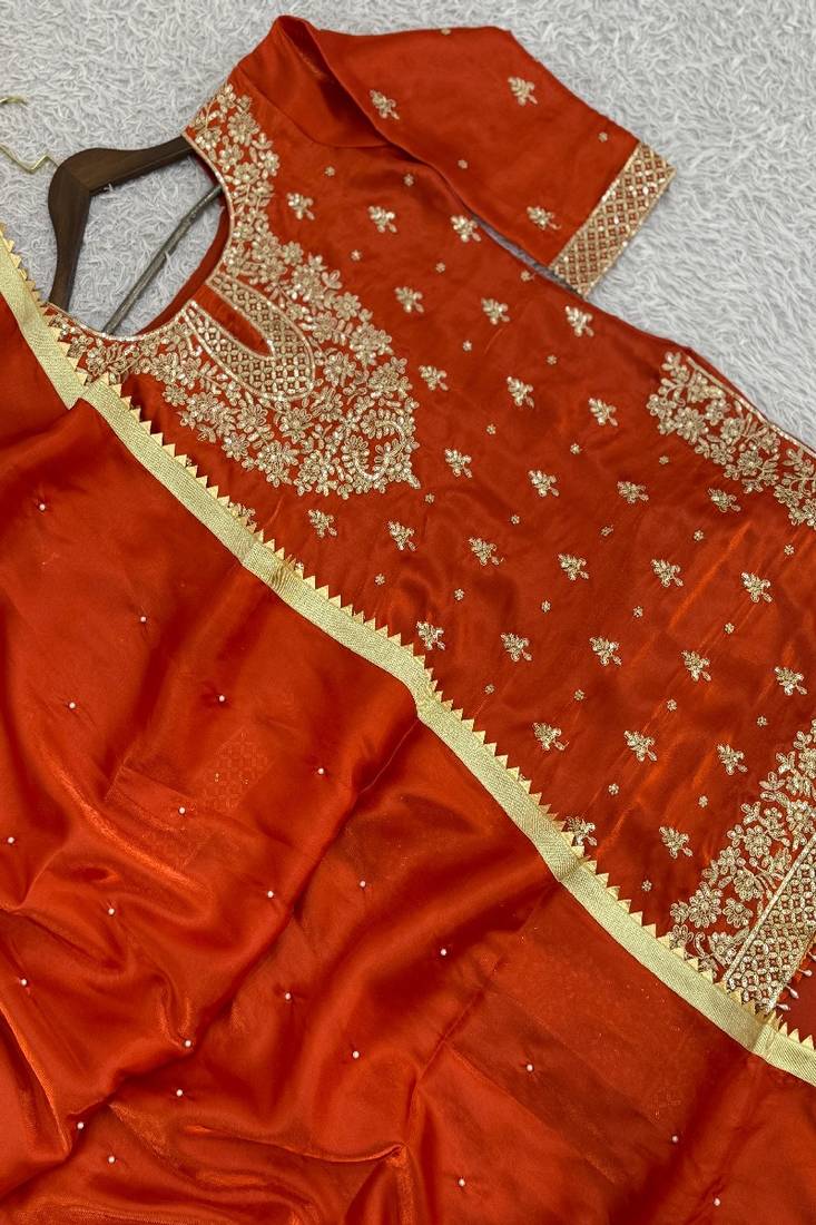 | Product Description | Beautiful Orange Ethnic Suit Crafted With Detailed Embroidery And Elegant Patterns. The Vibrant Color Combined With Intricate Traditional Work Creates A Stunning Festive Outfit. Perfect For Weddings, Cultural Celebrations, And Festive Gatherings. Premium Fabric And Artistic Craftsmanship Ensure Both Comfort And Timeless Ethnic Sophistication. |