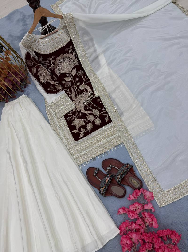 | Product Name | Organza Maroon & Cream Contrast Palazzo Set | |