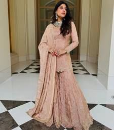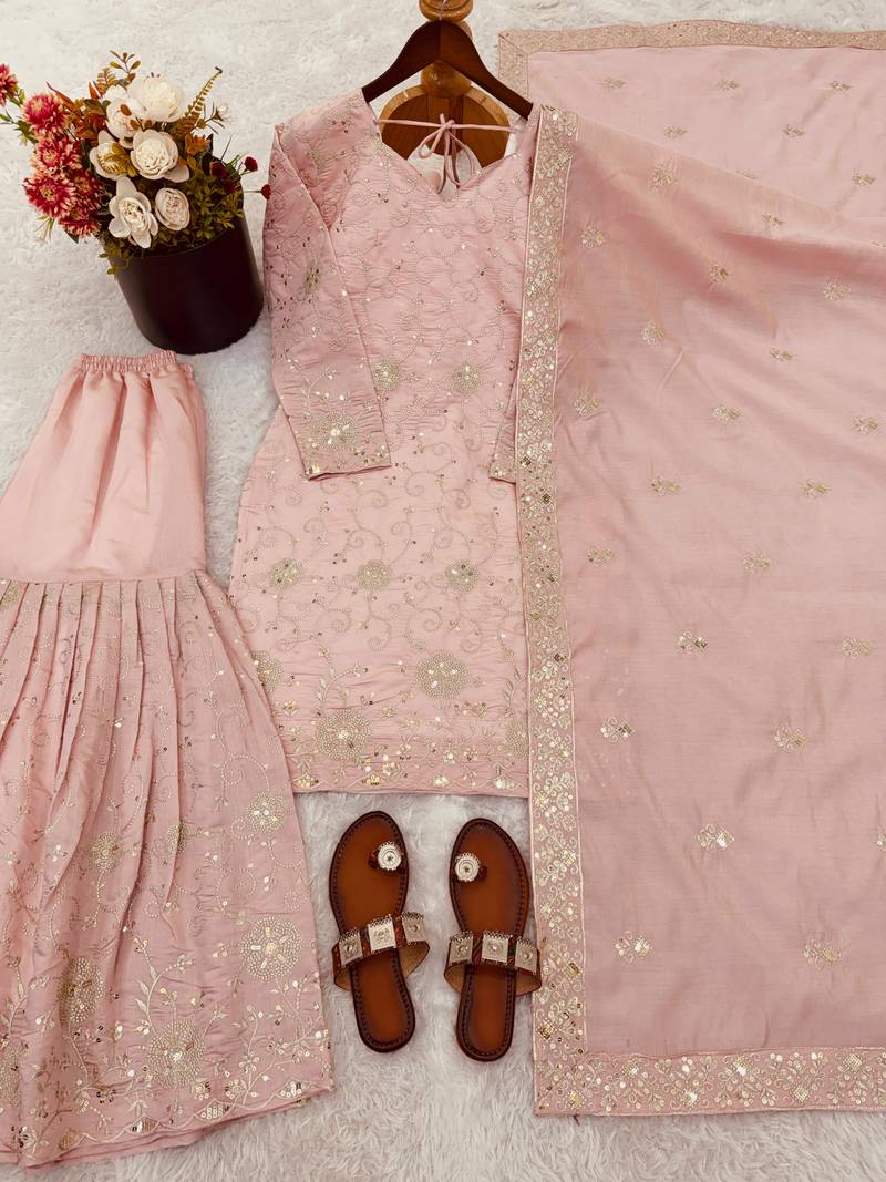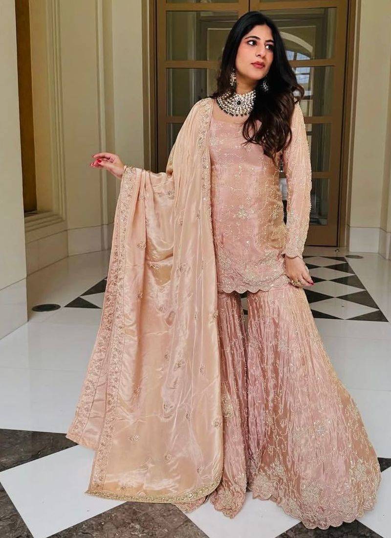 Pastel pink embroidered sharara suit stitched
