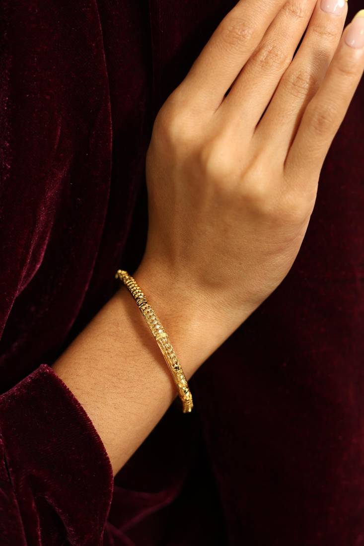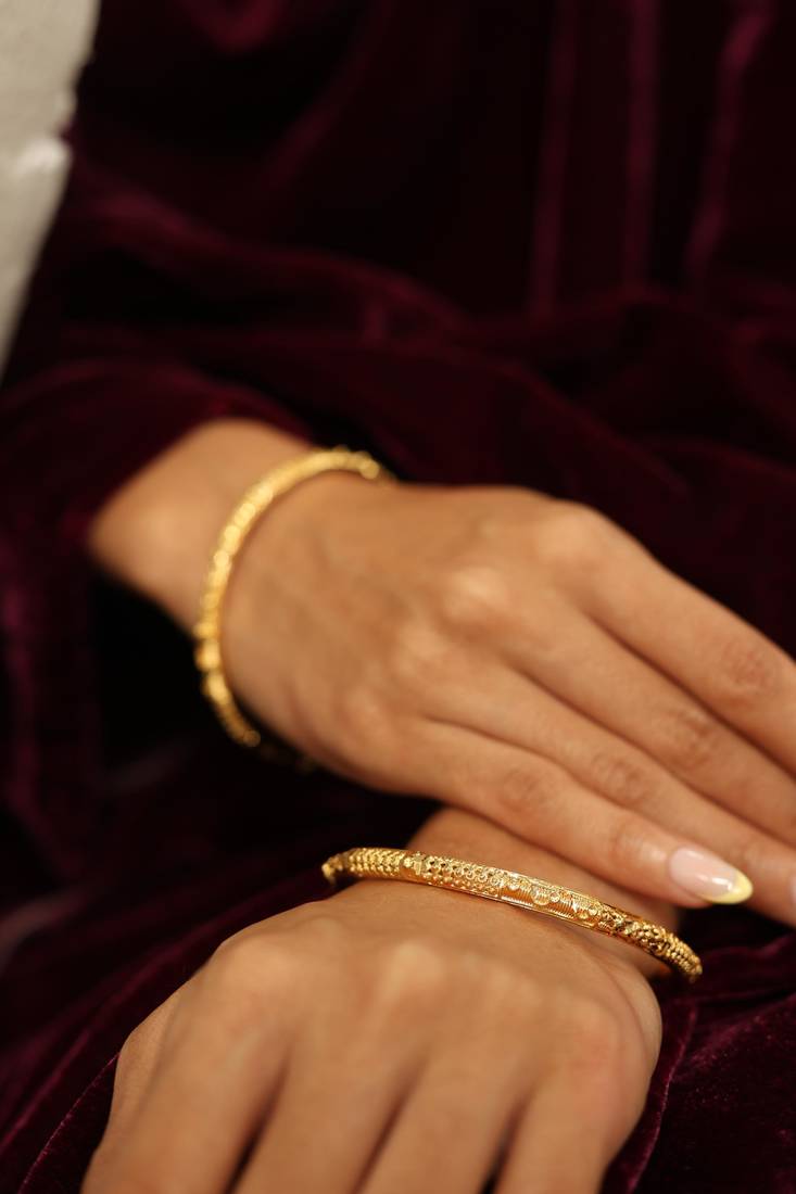 | Product Description | Celebrate Craftsmanship With These Patterned Gold Eternity Bangles. Featuring A Continuous Engraved Design, These Pieces Offer A Seamless Look Of Luxury. The Detailed Metalwork Showcases Traditional Artistry, Ensuring These Bangles Remain A Cherished Part Of Your Heirloom Collection For Years To Come. |