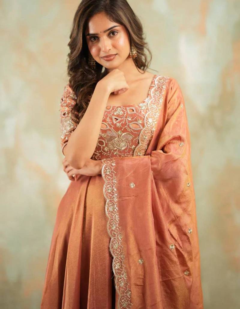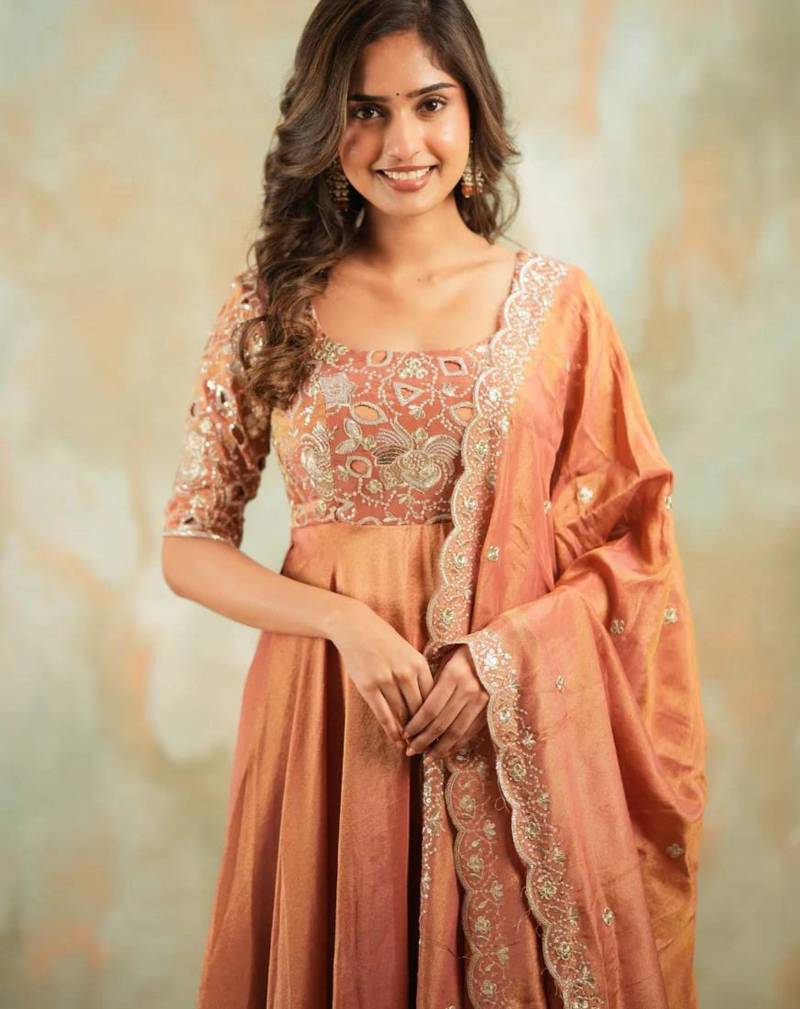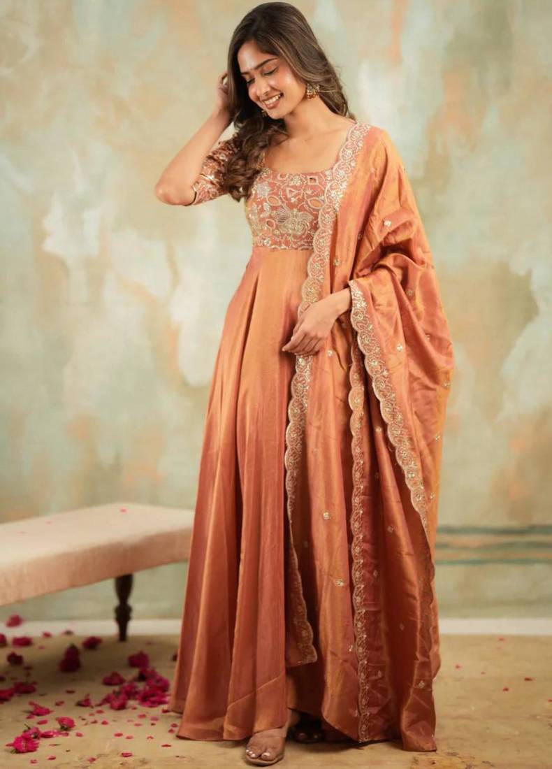 | Product Description | Elevate Your Festive Wardrobe With This Peach Anarkali Suit Featuring Intricate Zari And Thread Embroidery On The Bodice. Designed With A Flowing Silhouette And Matching Embellished Dupatta, This Elegant Outfit Offers Comfort And Grace. Perfect For Weddings, Celebrations, And Traditional Occasions, It Blends Timeless Craftsmanship With Modern Style. |