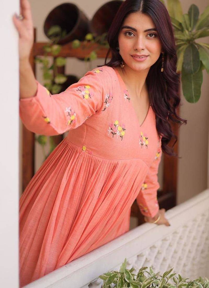 | Product Description | Soft Peach Ethnic Dress With Subtle Floral Embroidery And Graceful Pleats. Ideal For Casual Festive Events, Brunch Gatherings, And Daytime Occasions. Designed For Effortless Elegance. |