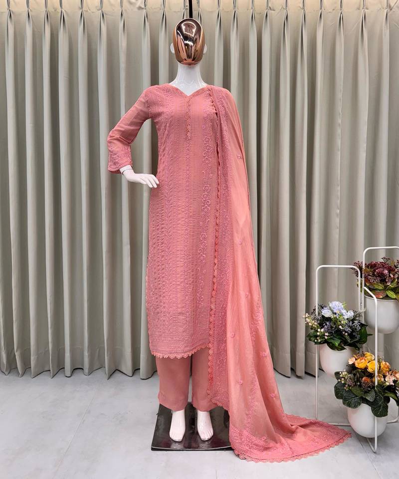 | Product Name | Peach Thread Embroidered Straight Cut Kurta Set | |