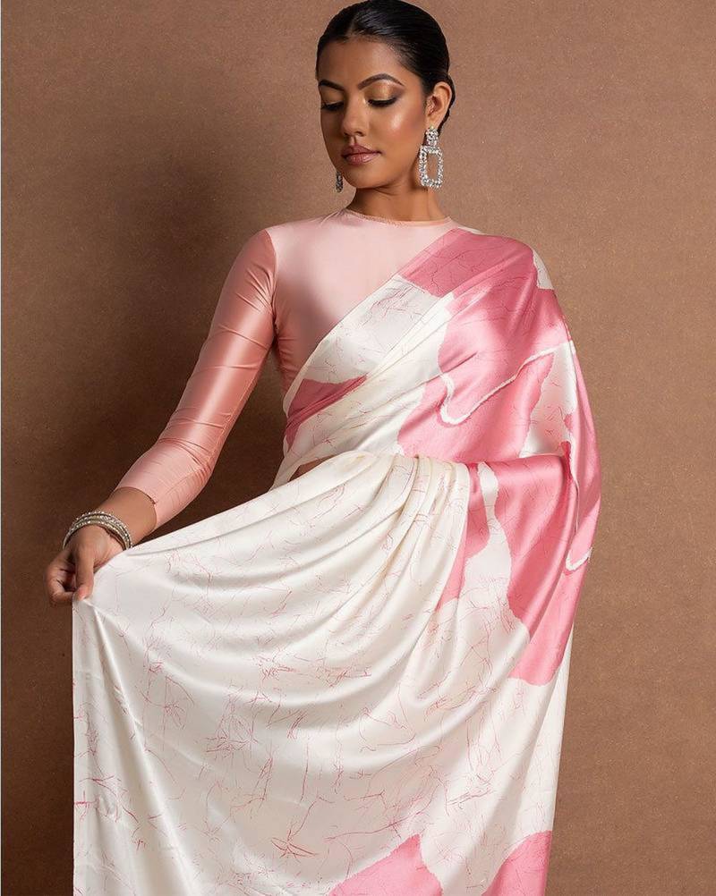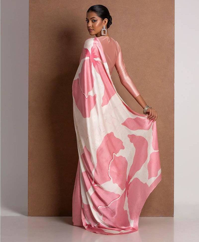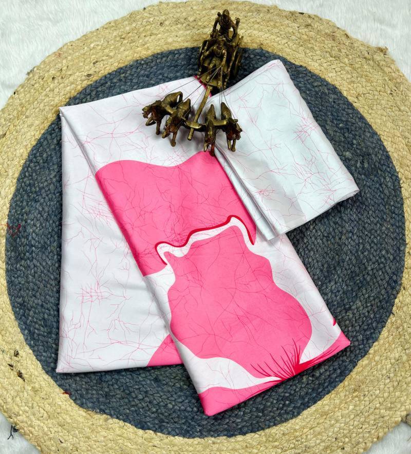 Product Name Pink Printed Satin Saree With Blouse Piece