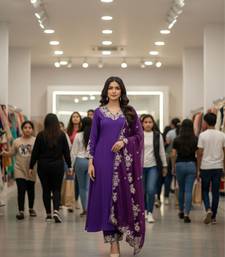 Purple embroidered kurta set stitched