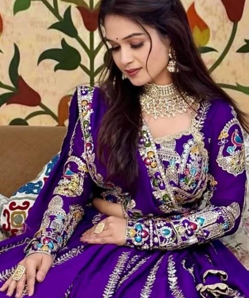 | • | Dupatta | : | Color- Purple / Fabric- Silk Blend |