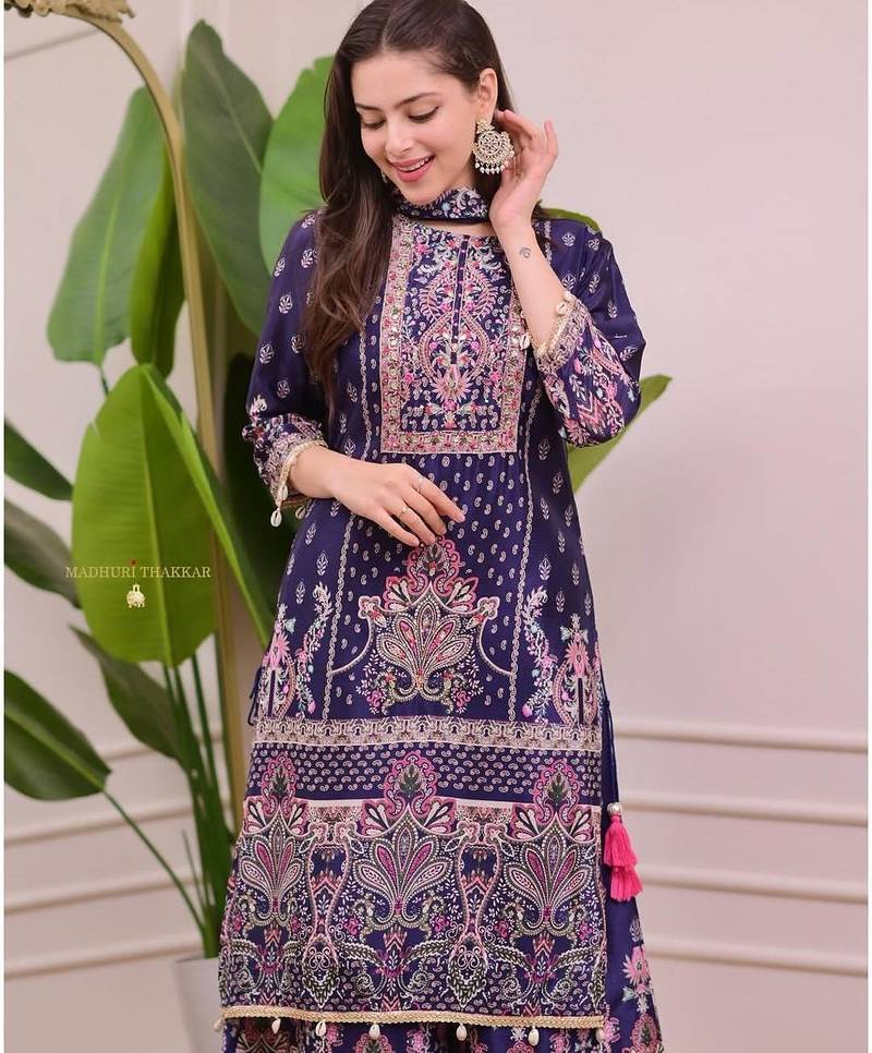 | • | Dupatta | : | Color- Purple / Fabric- Silk Blend |