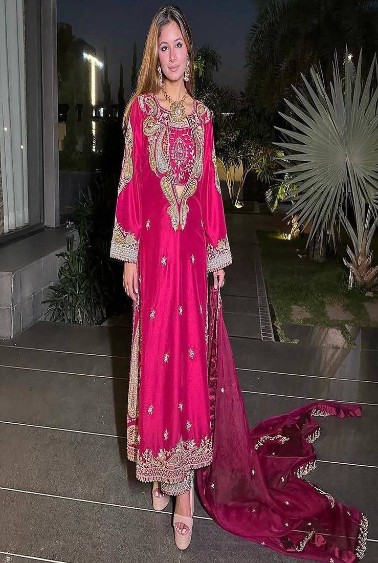 | Product Description | Stand Out In This Vibrant Rani Pink Embroidered Suit Crafted With Intricate Gold Detailing. The Elegant Straight Cut Kurta And Flowing Dupatta Offer A Flattering Fit. Ideal For Festive Events, Receptions, And Special Occasions, This Ensemble Blends Comfort, Glamour, And Refined Ethnic Style. |