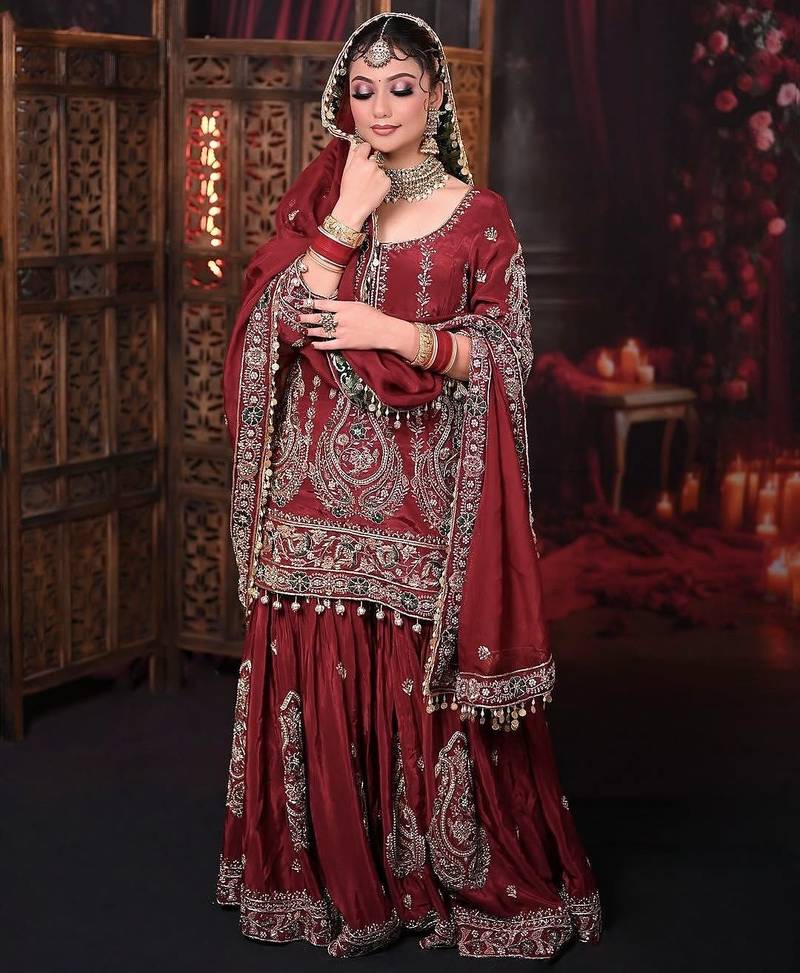 Red bridal sharara set stitched