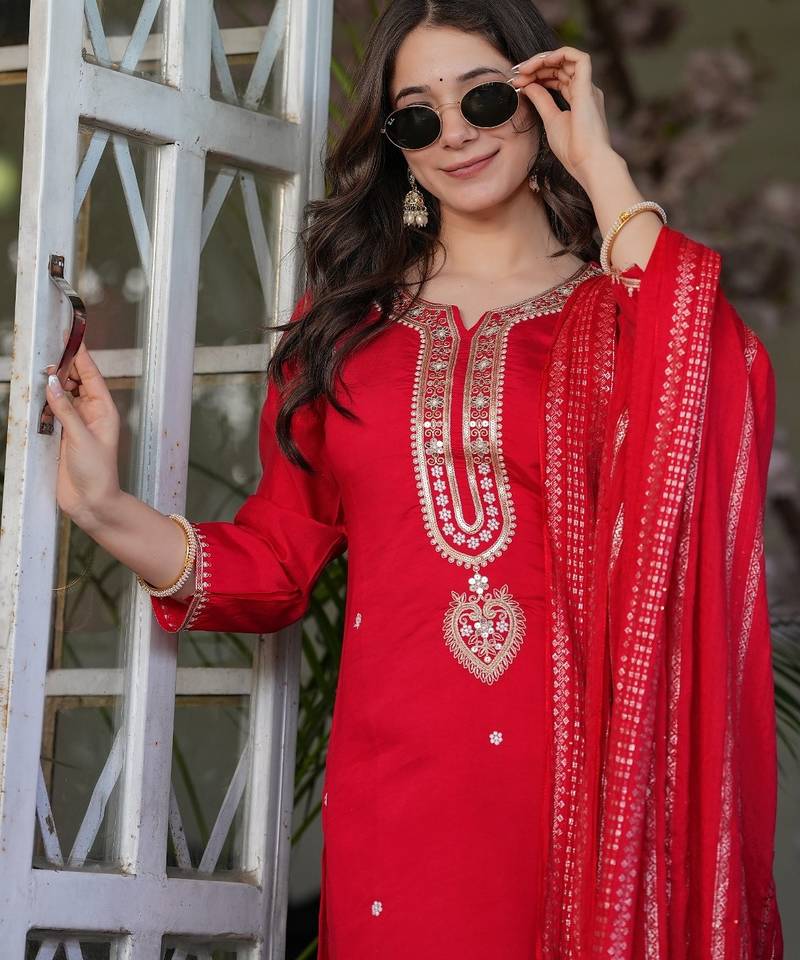 | Product Description | This Red Kurta Features Intricate Gold Thread Embroidery That Highlights The Neckline And Front Panel Beautifully. Designed For Elegance And Comfort, The Soft Fabric Drapes Effortlessly While Adding A Refined Traditional Touch. Perfect For Festive Gatherings, Cultural Events, Or Special Occasions, This Kurta Blends Classic Design With Modern Sophistication. |