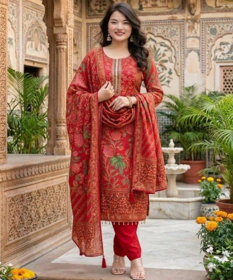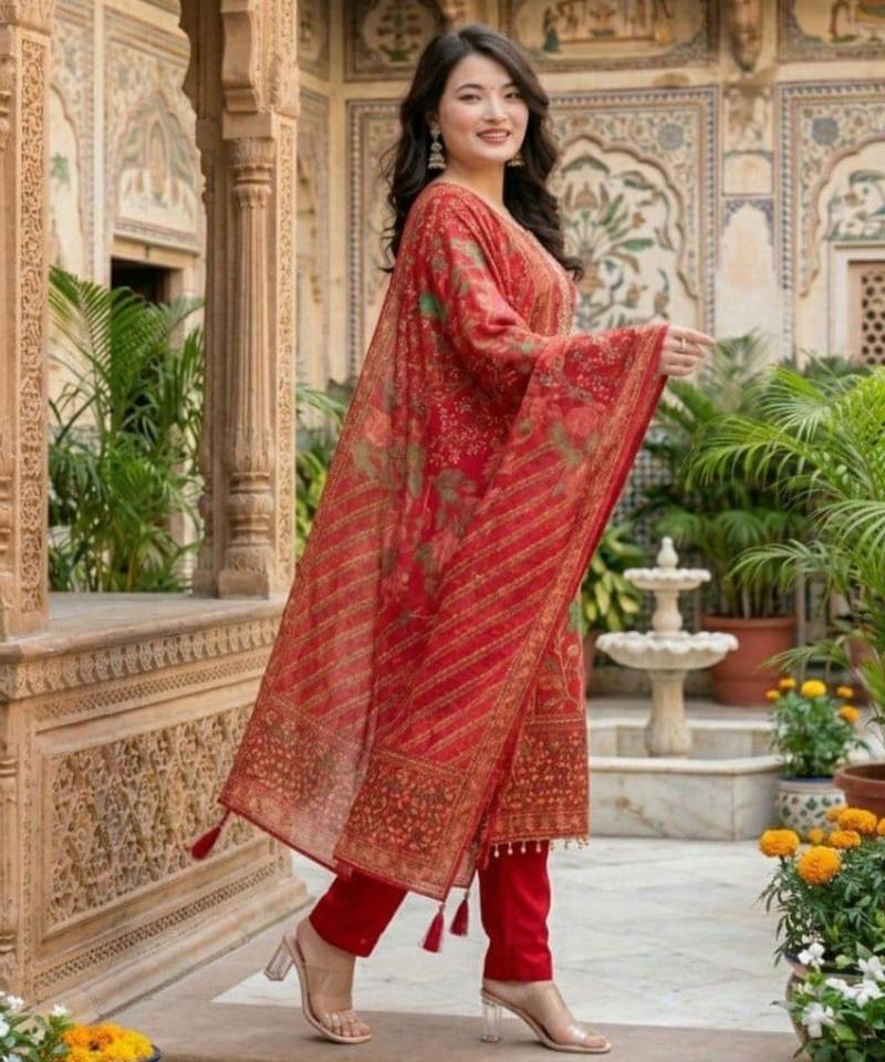 | Product Description | Add Vibrant Charm To Your Daily Wear With This Red Floral Printed Kurta Set. Crafted From Breathable Fabric, It Features A Detailed Embellished Neckline And Eye Catching Botanical Prints. Ideal For Casual Outings Or Workwear, This Stylish Ensemble Ensures Comfort While Keeping Your Ethnic Look Fresh And Lively. |