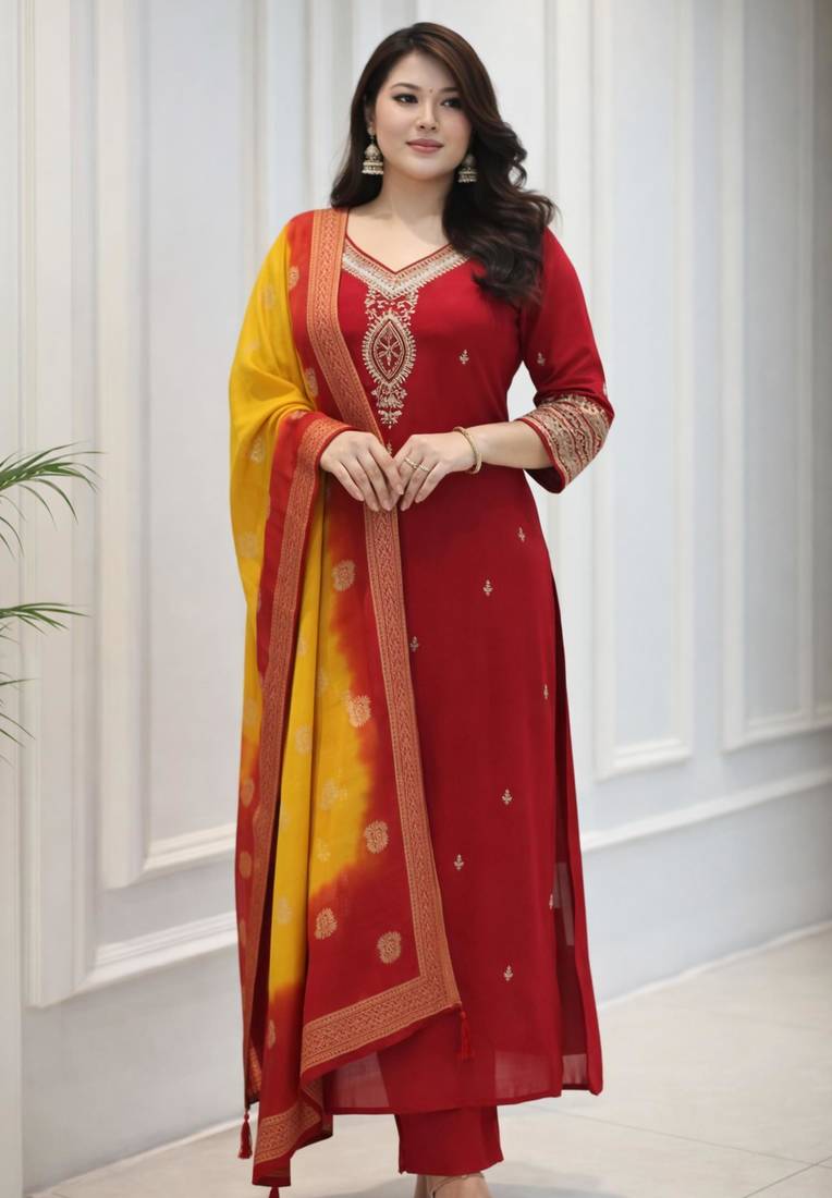 | Product Name | Red Silk Blend Embroidered Kurta Sets | |