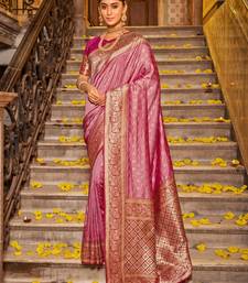 Discover Timeless Sophistication With This Ethereal Rose Pink Silk Blend Saree. Meticulously Adorned With Delicate Metallic Motifs And An Incredibly Detailed, Rich Maroon Zari Border, It Creates A Wonderfully Majestic Aesthetic. This Exceptionally Elegant, Perfectly Tailored Drape Is An Outstanding Choice For Sophisticated Bridal Parties And Formal Cultural Galas.