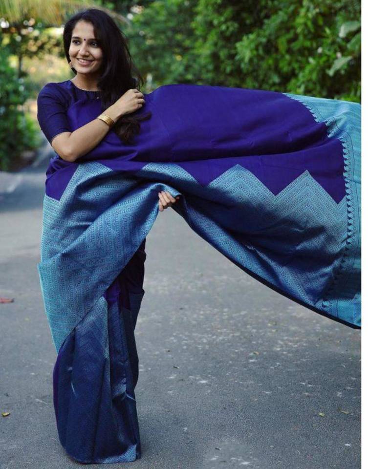 | Product Name | Royal Blue Silk Blend Saree With Light Blue Geometric Border Patterns | |