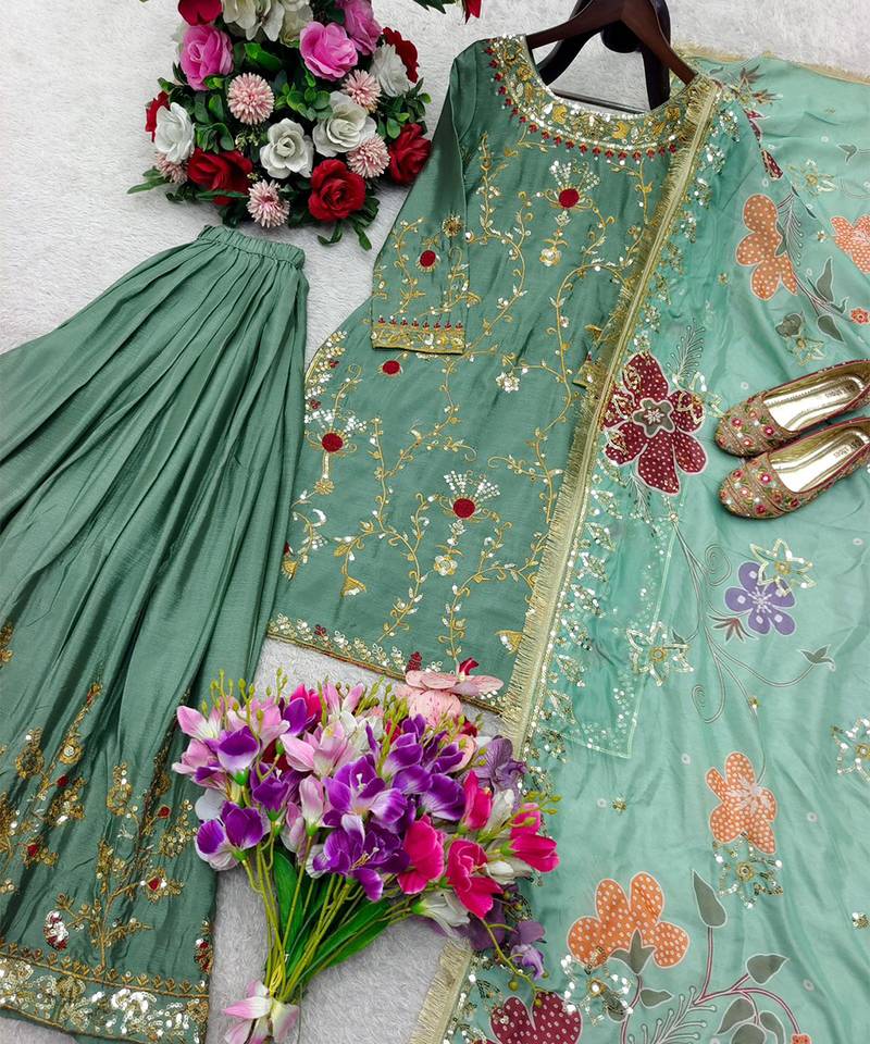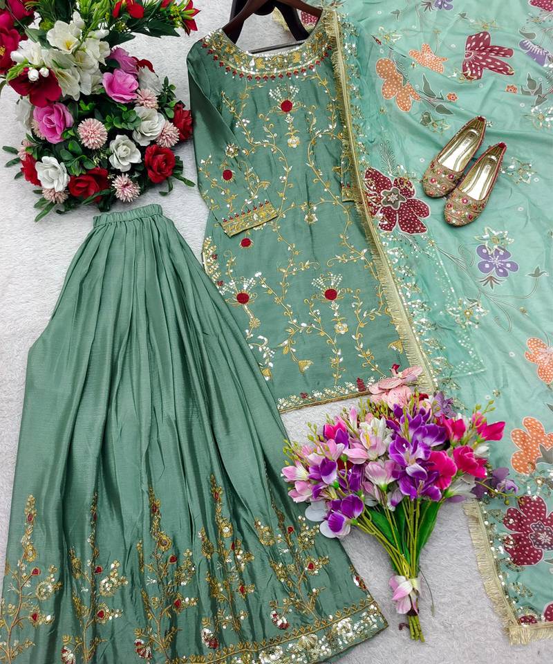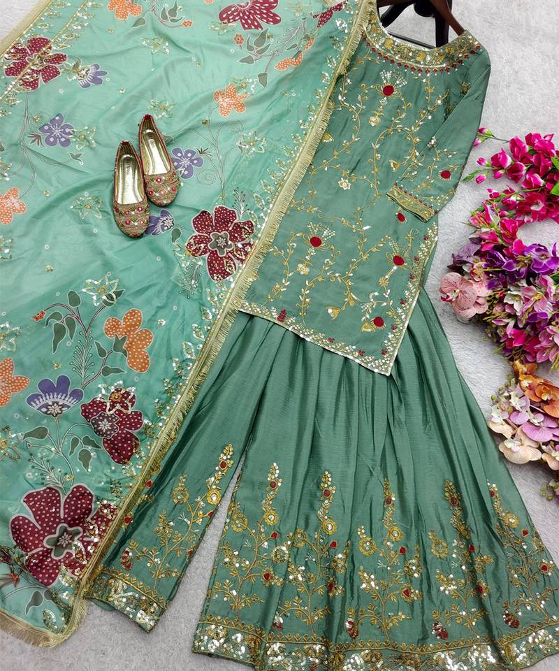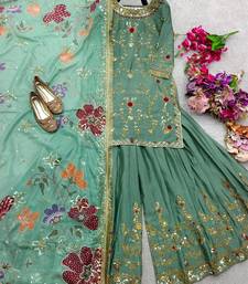 | Product Name | Sage Green Floral Sharara Ensemble | |
