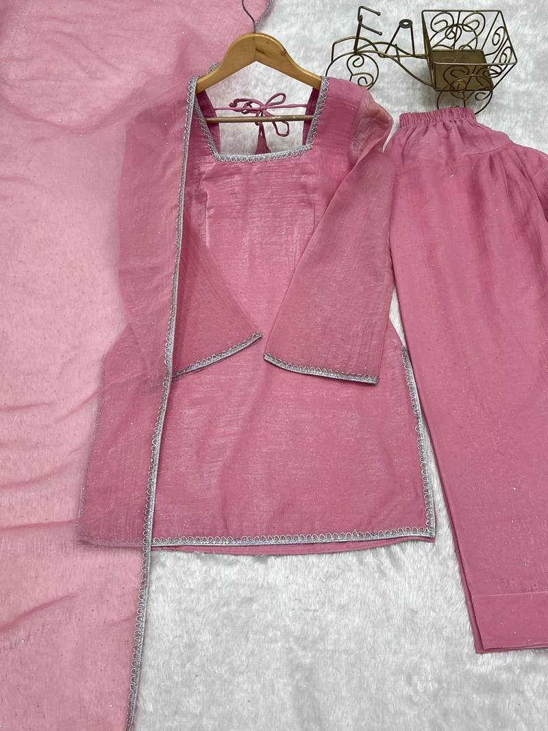 | Product Description | This Soft Pink Kurta Pant Set Features A Minimal Design With Delicate Embellishments And A Matching Lightweight Dupatta. Crafted From Breathable Fabric, It Ensures Comfort And Effortless Style. Perfect For Casual Outings, Office Wear, Or Small Gatherings, This Outfit Offers A Graceful And Modern Ethnic Look. |