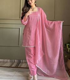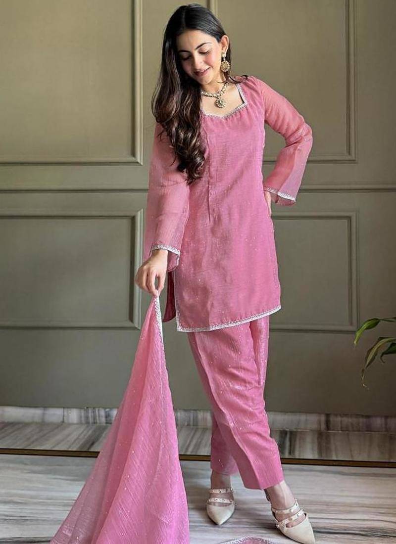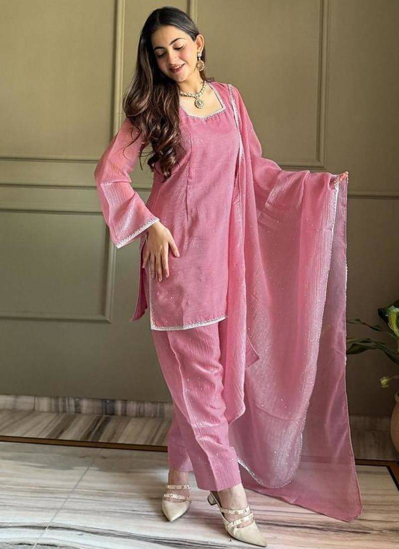 Soft pink kurta pant set with dupatta stitched