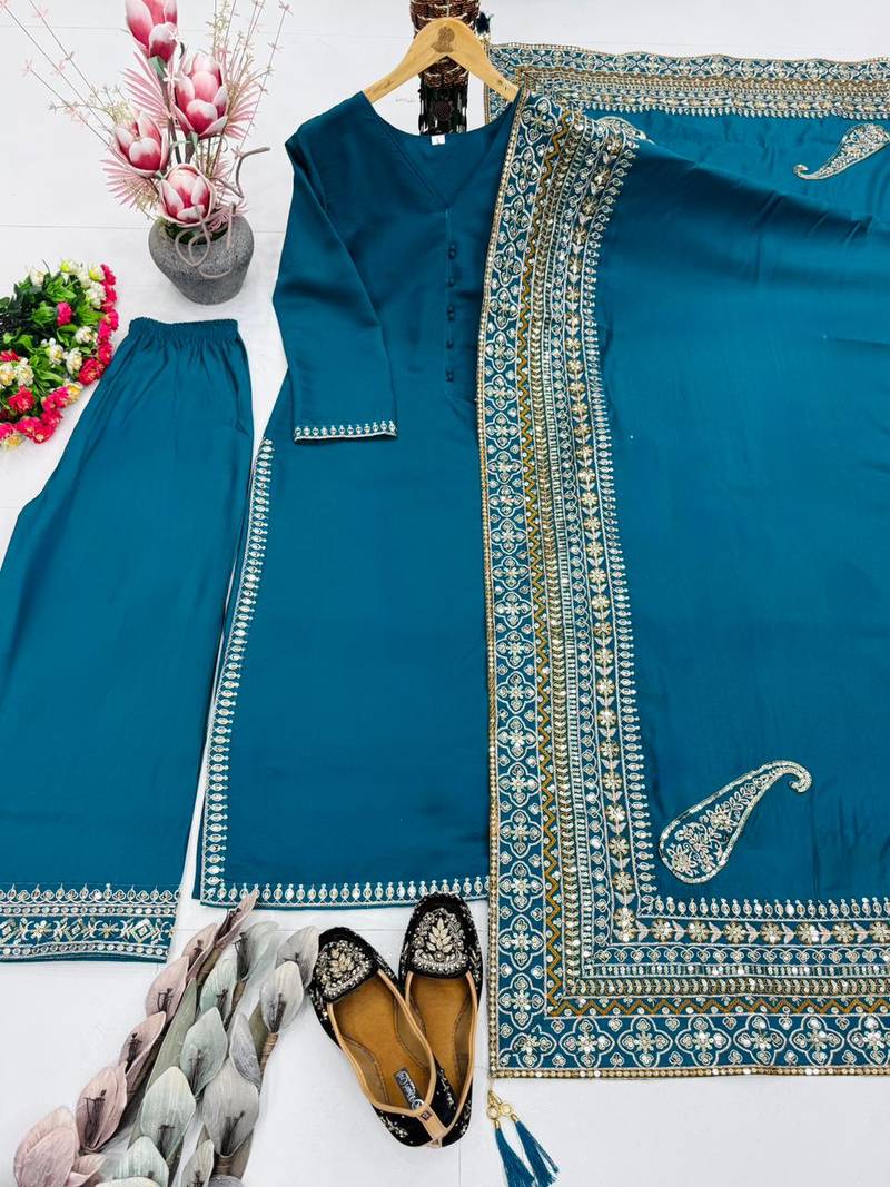 | Product Name | Stunning Teal Blue Silk Salwar Set With Intricate Ethnic Embroidery | |