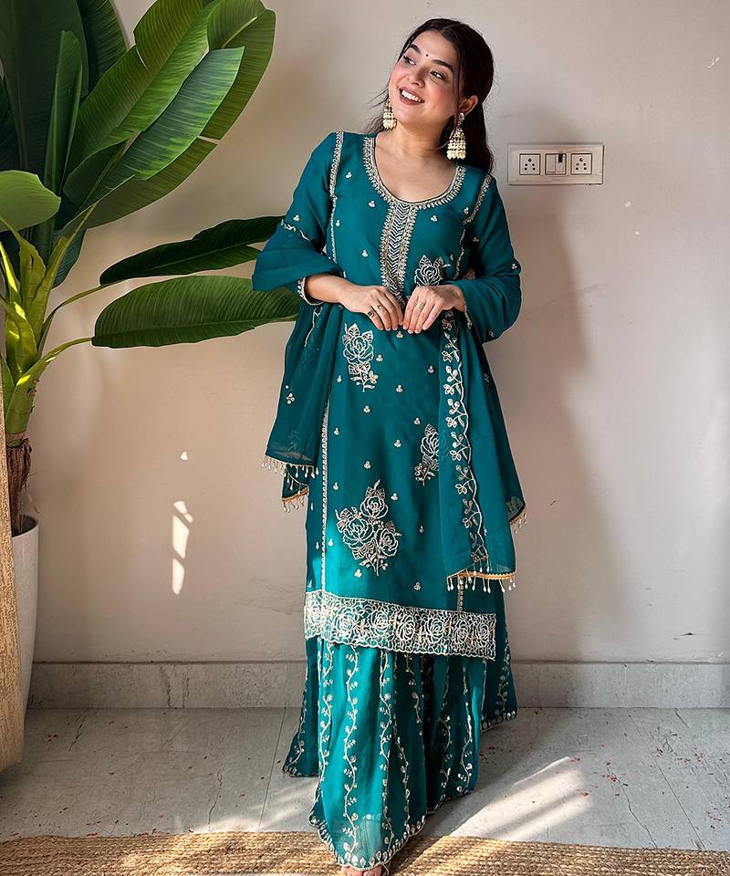| Product Name | Teal Georgette Rose Embroidered Kurta Set | |