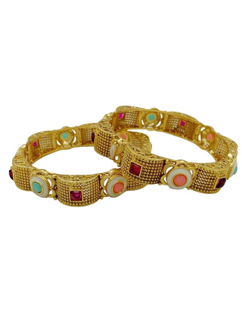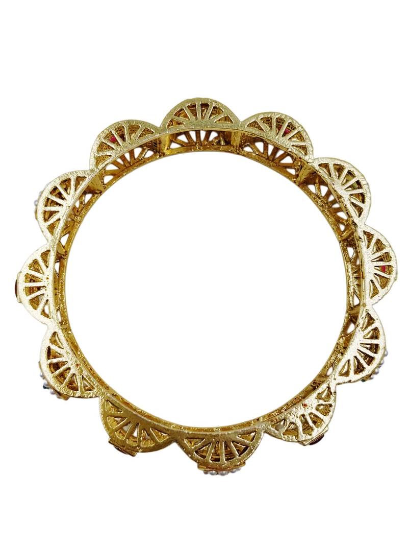| Product Description | Enhance Your Ethnic Ensemble With These Exquisite Gold Plated Bangles, Featuring A Unique Scalloped Silhouette. Adorned With Precision Cut Kundan Stones And Delicate Beadwork, These Handcrafted Pieces Blend Traditional Artistry With Modern Flair. Perfect For Weddings Or Festive Celebrations, They Offer A Regal Touch To Any Sophisticated Jewelry Collection. |