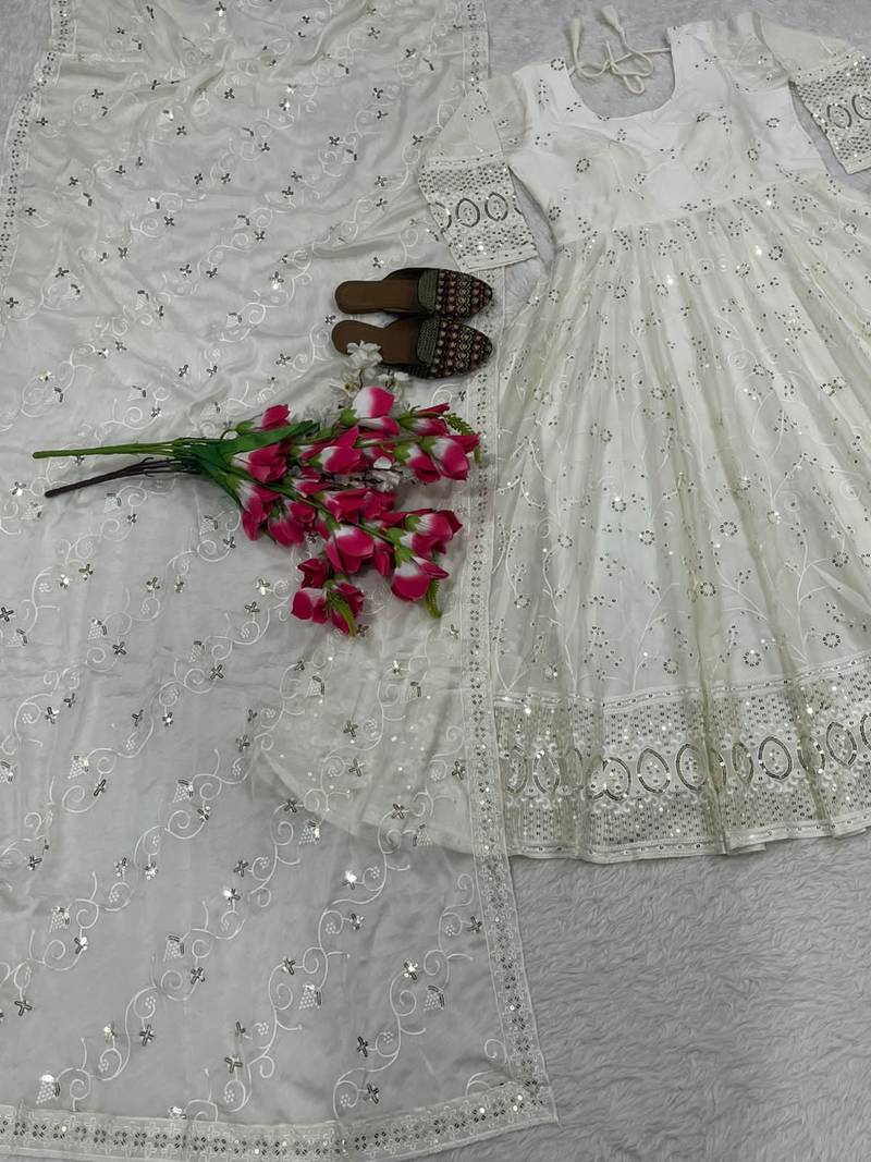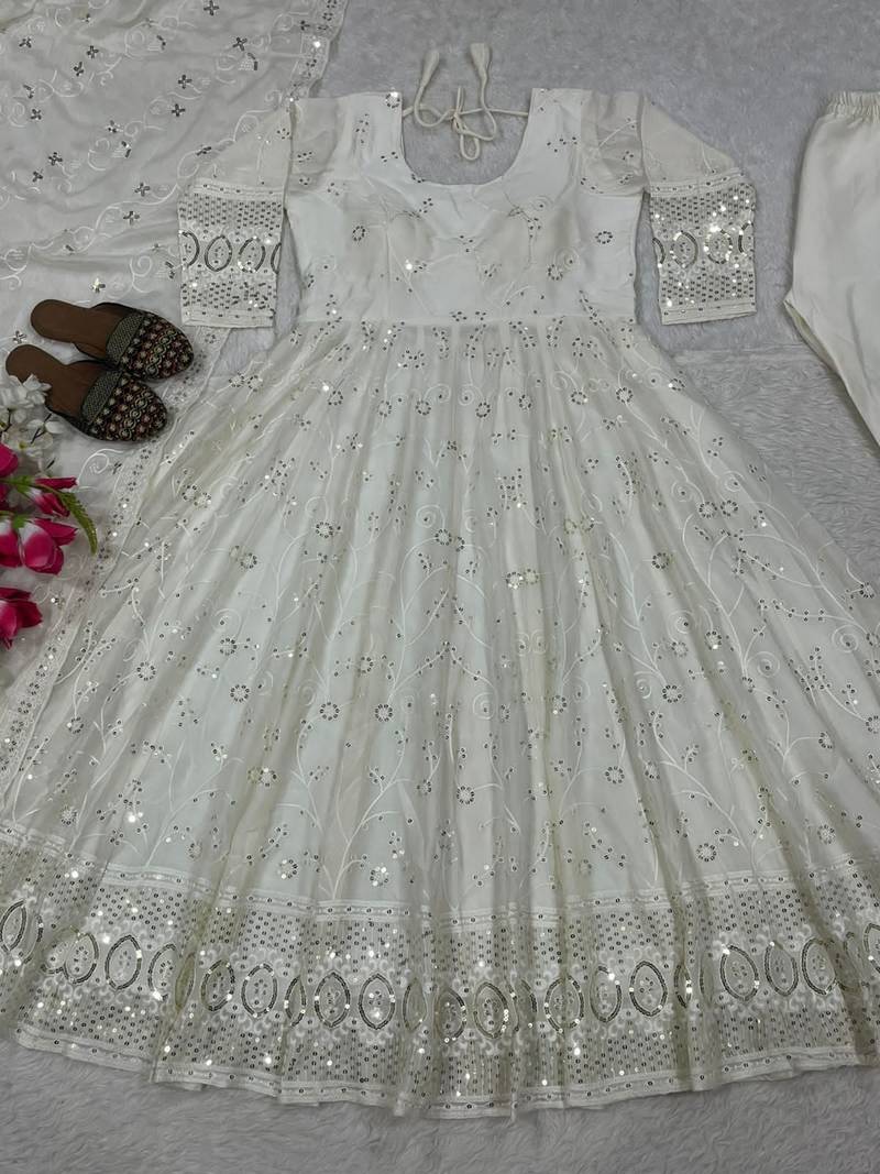 | Product Description | White Anarkali Gown Featuring Delicate Embroidery And A Flowing Silhouette. Paired With A Matching Dupatta, This Outfit Is Ideal For Weddings, Festive Occasions, And Elegant Evening Gatherings. |