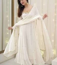White embroidered georgette anarkali suit set stitched
