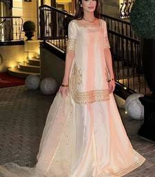 | Product Description | Shine In Sophistication With Our White Silk Blend Sharara Suit. This High Fashion Ensemble Features A Short Sleeved Tunic Adorned With Delicate Gold Embroidery On The Sleeves And Hem. Paired With Voluminous Flared Pants And A Lightweight Dupatta, It Offers A Luxurious, Editorial Inspired Look Perfect For Evening Soirées And Upscale Traditional Events. |