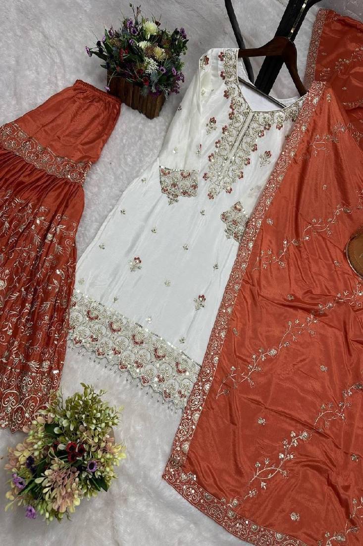 White & orange sharara suit stitched