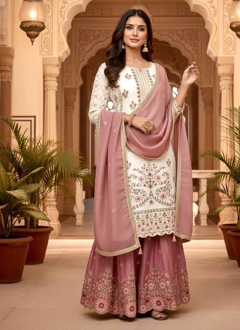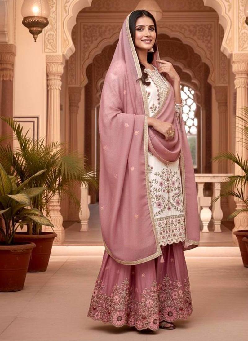 | Product Description | This White&Pink Floral Sharara Set Features Delicate Embroidery On The Kurta And A Beautifully Flared Skirt With Intricate Border Detailing. The Soft Dupatta Enhances Its Graceful Look. Ideal For Engagement Parties, Festive Celebrations, And Wedding Functions Requiring Refined Elegance. |