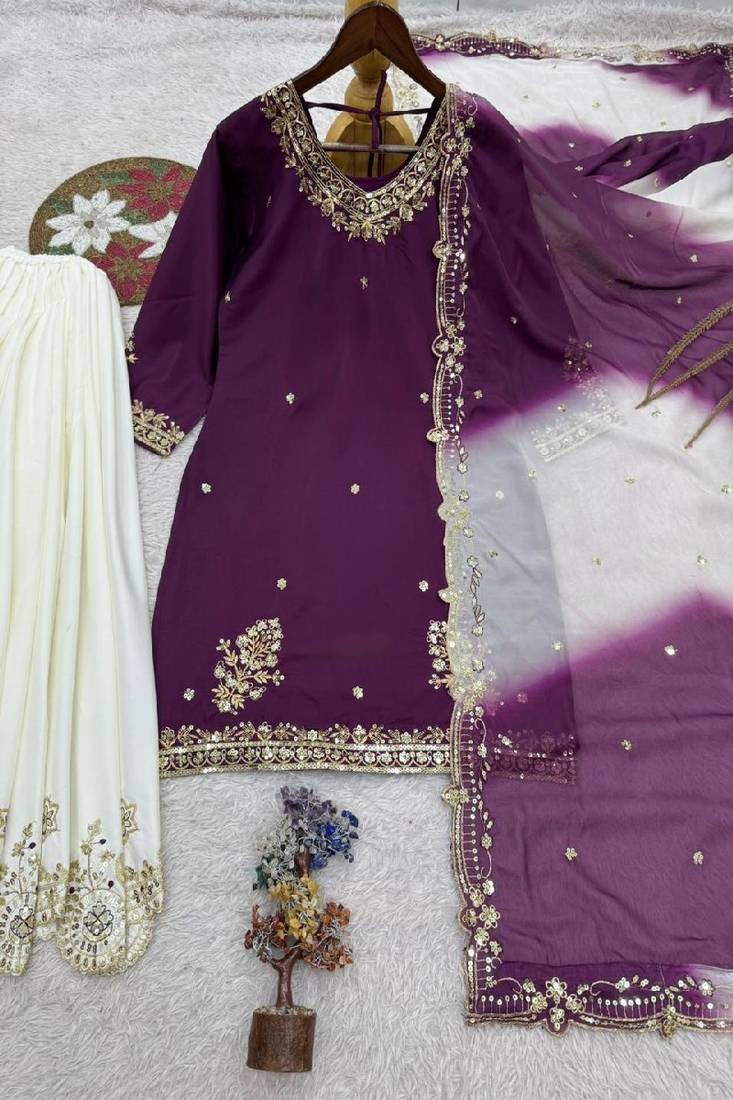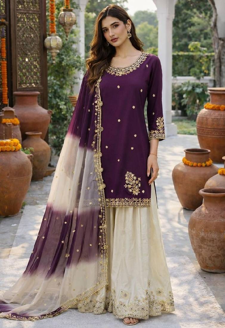 | Product Name | White & Purple Sharara Set | |
